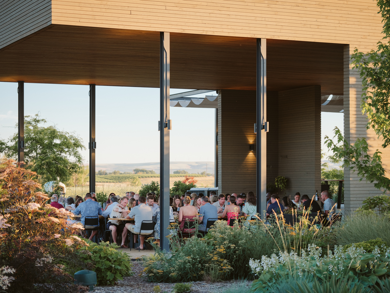The Wine Garden is a covered sunken patio on the east side of our tasting room. The covered space measures 50′ by 70′ and can hold up to 75 people comfortably. Adjacent to the space is our outdoor kitchen complete with an oversized island and prep space, 2 XL Big Green Eggs, and a Gaucho Grills Parilla. Have an idea for an epic party? Email us, info@altonwines.com, to get the conversation started.
